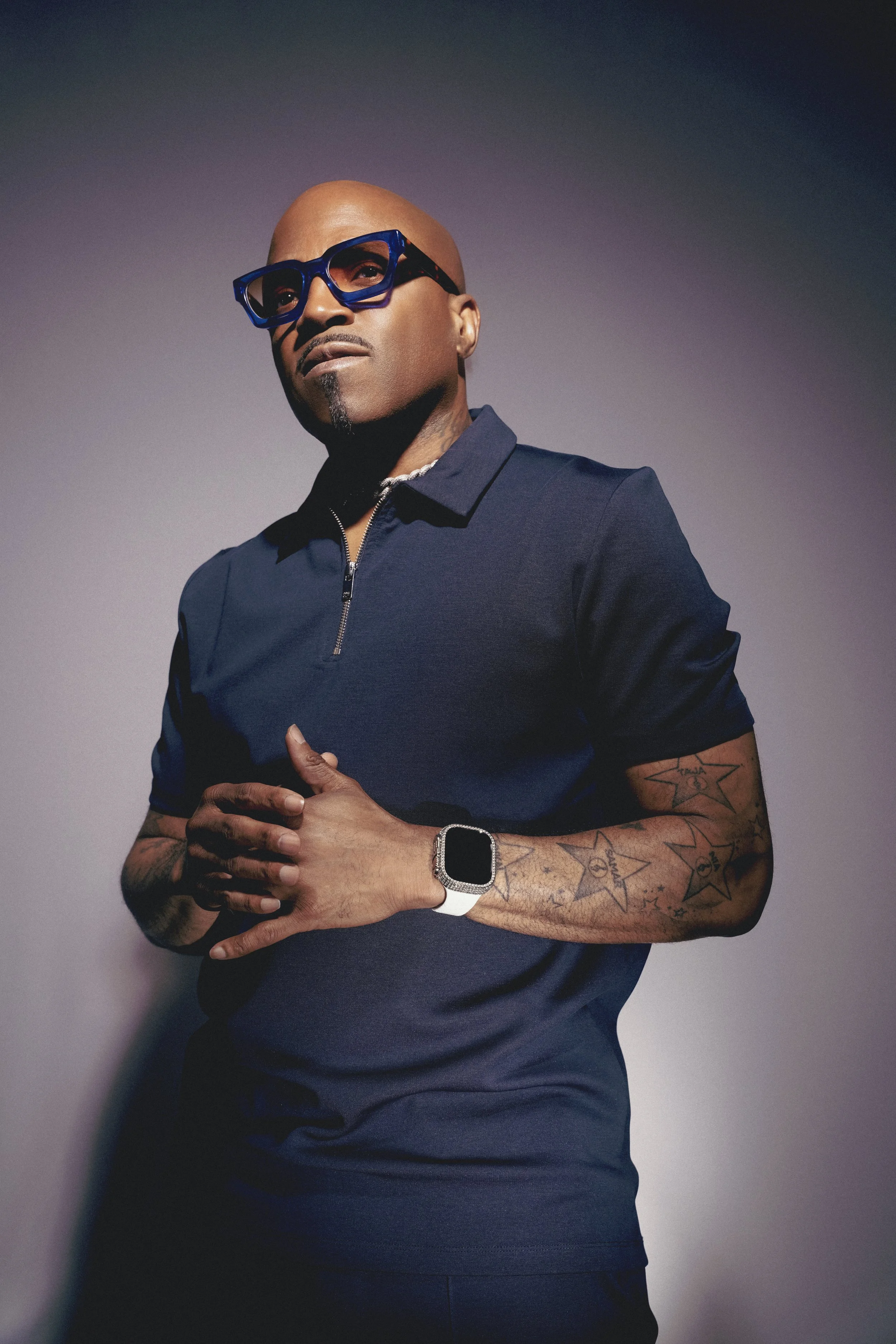 I had the opportunity to photograph music powerhouse and legendary producer Teddy Riley during an impromptu shoot in a very small space. To maximize control and flexibility, I built the setup using C-stands with boom arms and a cloth backdrop to create depth and separation.