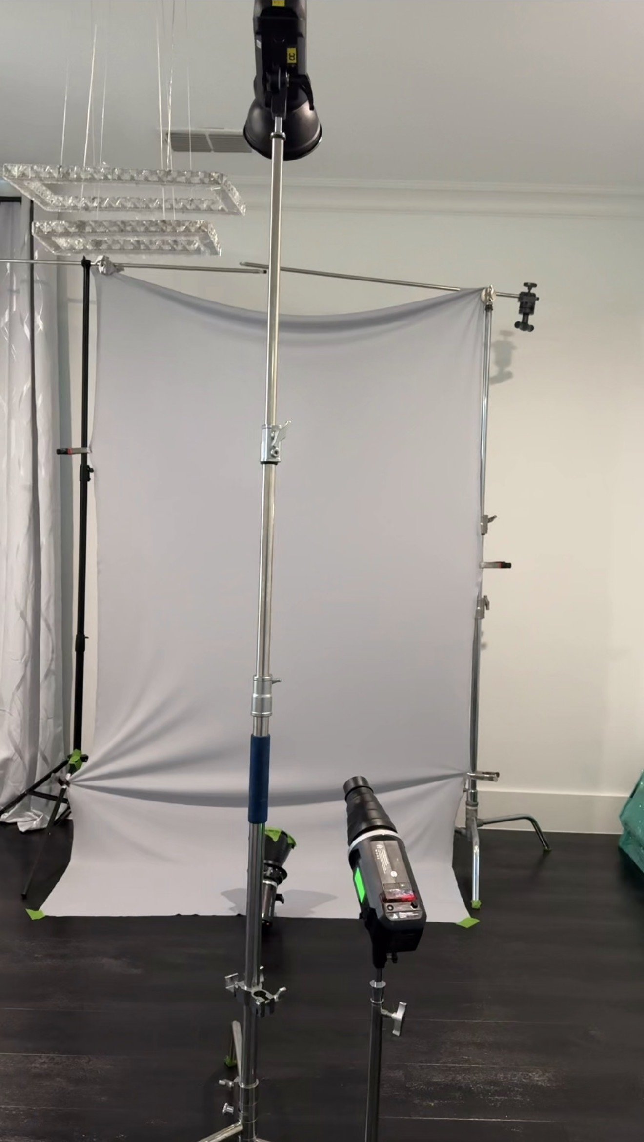 A Godox AD300 Pro with a small reflector was used to illuminate the backdrop, creating separation between the subject, the background, and the main light source.